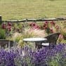 Sage, lavender, scented geranium, santolina, catmint and lamb’s ear that are grown for their foliage rather than their flowers and make good companions.